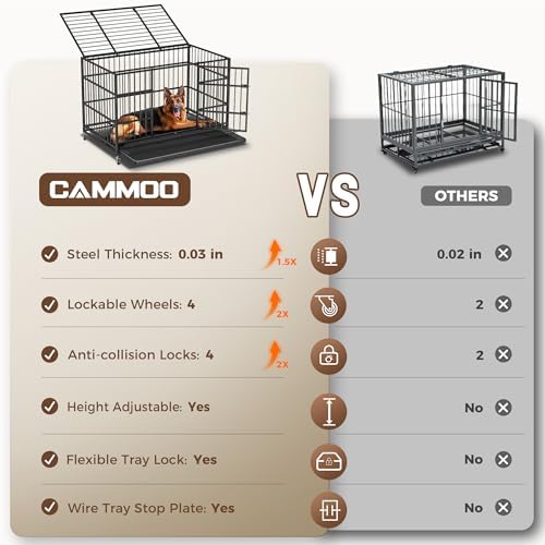 [Upgraded Dual Fixation] The unique detent design and upgraded 360° rotating tray lock ensure all trays stability, protecting the crate from damage by your dog. This cage is specifically designed for big breeds like German Shepherds, Golden Retrievers, and Labradors