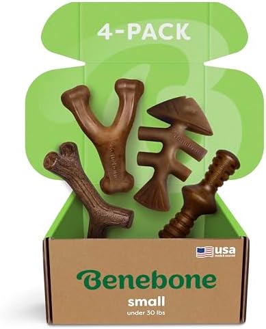Benebone Small 4-Pack Dog Chew Toys for Aggressive Chewers, Made in USA, 30lbs