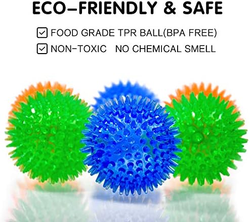 SAFE: Made of food grade, TPR, non-toxic, no chemical smell, provide the safest pet toys for your puppies. Not easy to be broken to cause choke risk since spikes on the ball have a buffer. The added benefit is helping to keep their gums and teeth cleaner